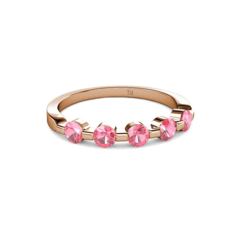 Round Pink Tourmaline 3/4 ctw 5 Stone Bar Set Womens Wedding Band Stackable 10K Rose Gold More Details ...