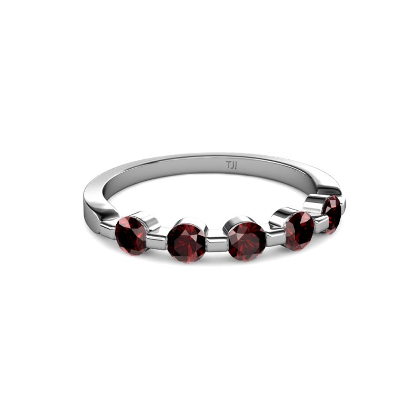 Round Red Garnet 3/4 ctw 5 Stone Bar Set Womens Wedding Band Stackable 10K White Gold More Details ...