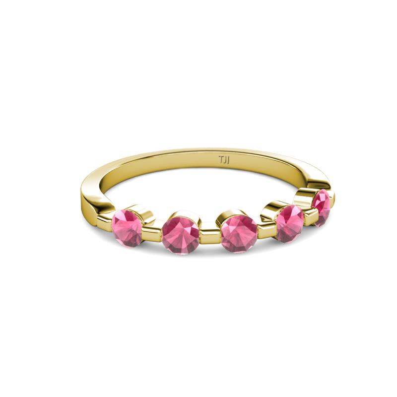 Round Rhodolite Garnet 3/4 ctw 5 Stone Bar Set Womens Wedding Band Stackable 10K Yellow Gold More Details ...