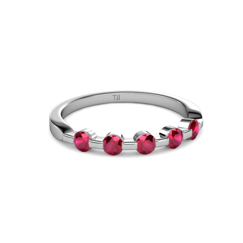 Round Ruby 1/2 ctw 5 Stone Bar Set Womens Wedding Band Stackable 10K White Gold More Details ...