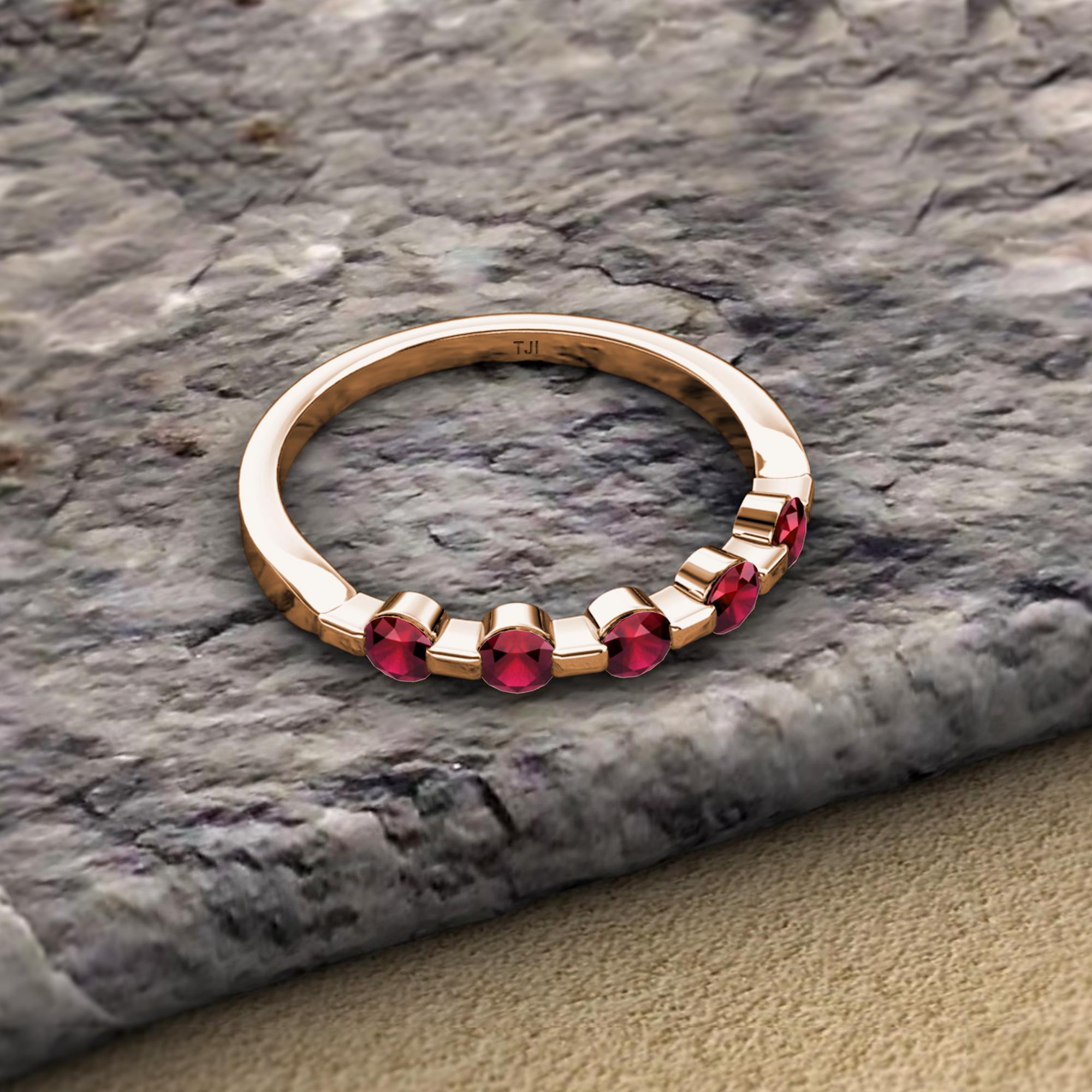 Round Ruby 1/2 ctw 5 Stone Bar Set Womens Wedding Band Stackable 10K Rose Gold More Details ...