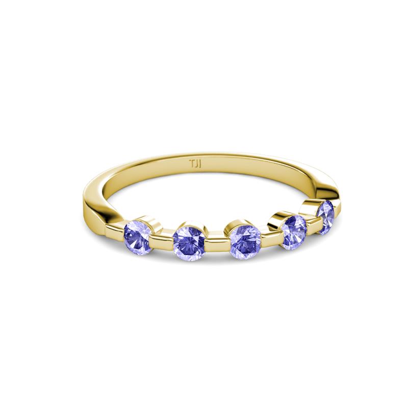 Round Tanzanite 1/2 ctw 5 Stone Bar Set Womens Wedding Band Stackable 14K Yellow Gold More Details ...