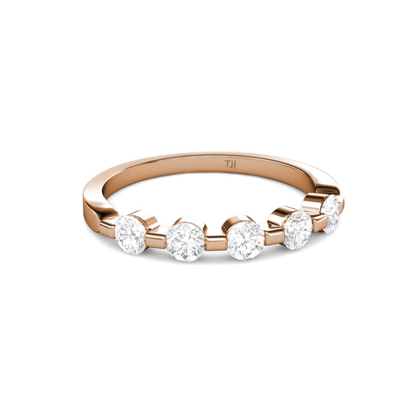 Round White Sapphire 3/4 ctw 5 Stone Bar Set Womens Wedding Band Stackable 18K Rose Gold More Details ...
