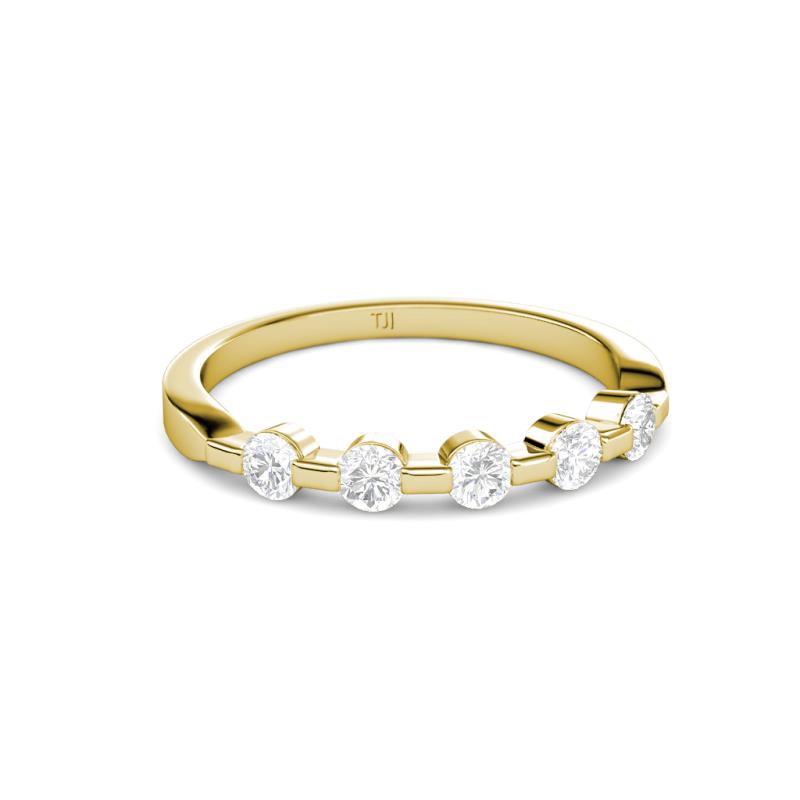 Round White Sapphire 1/2 ctw 5 Stone Bar Set Womens Wedding Band Stackable 14K Yellow Gold More Details ...