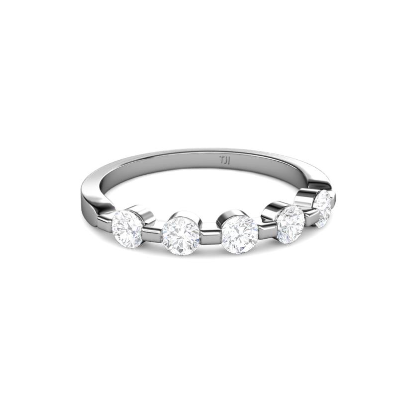 Round White Sapphire 3/4 ctw 5 Stone Bar Set Womens Wedding Band Stackable 10K White Gold More Details ...