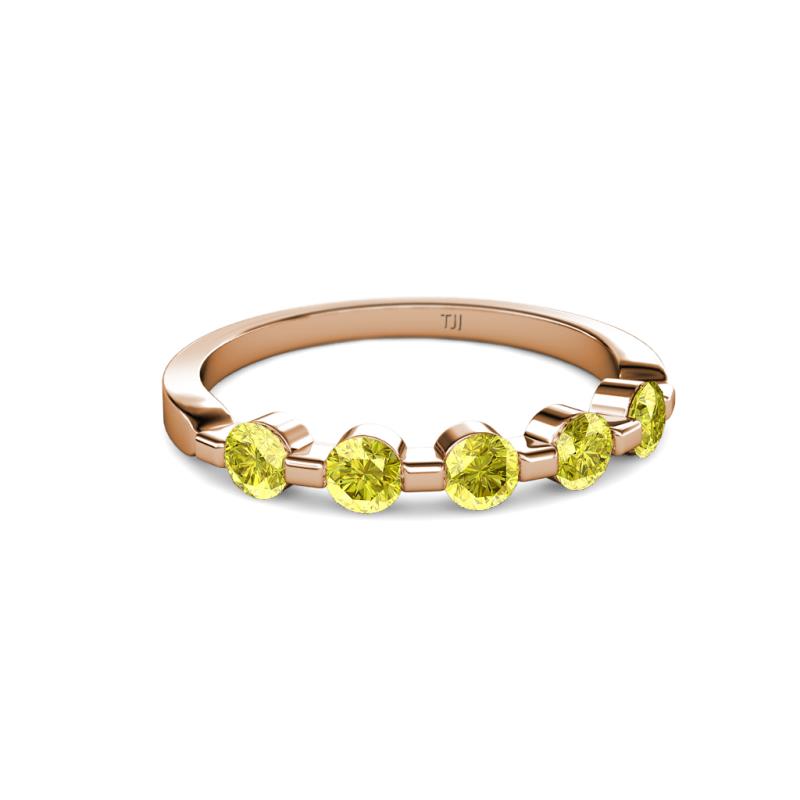 Round Yellow Diamond 3/4 ctw 5 Stone Bar Set Womens Wedding Band Stackable 10K Rose Gold More Details ...