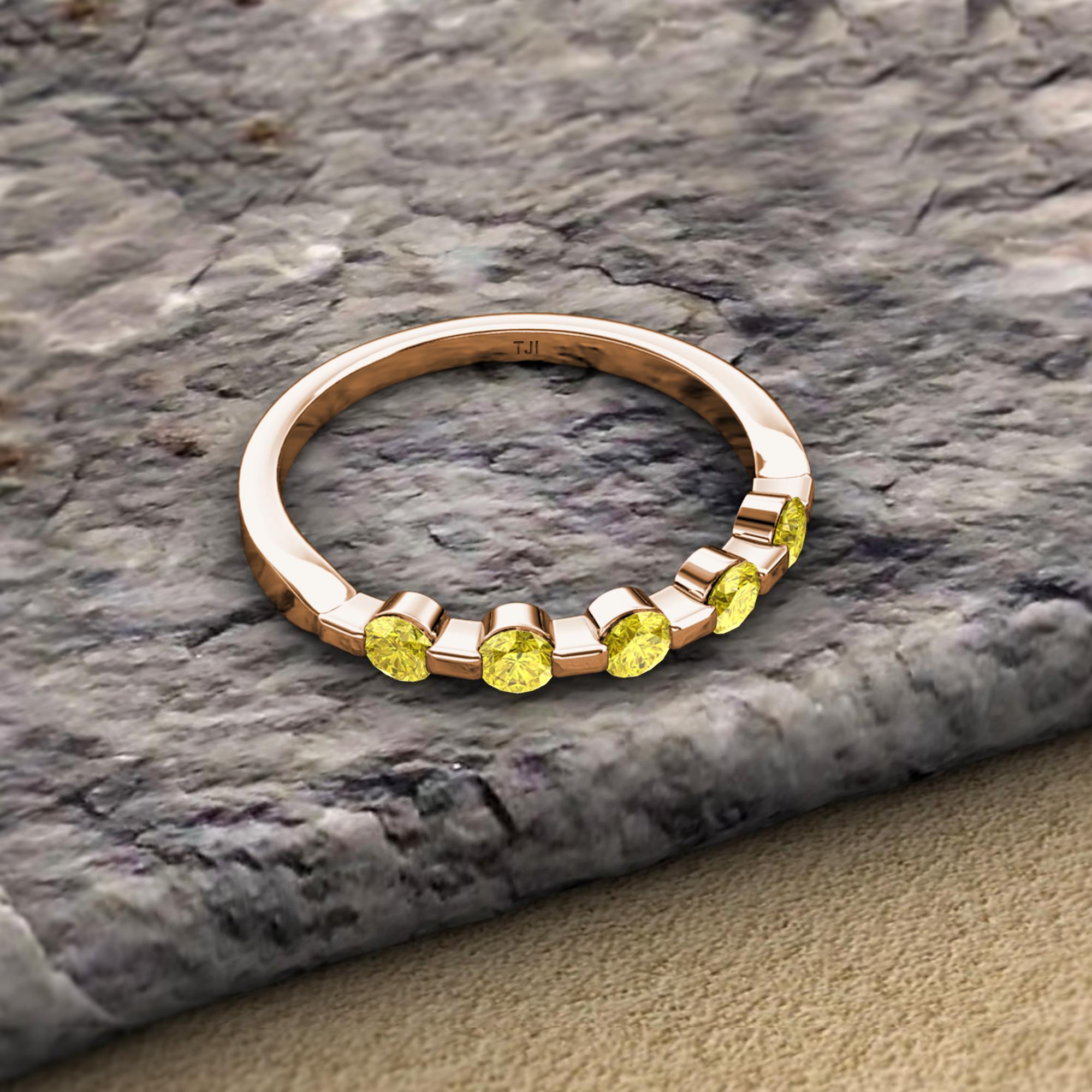 Round Yellow Sapphire 1/2 ctw 5 Stone Bar Set Womens Wedding Band Stackable 14K Rose Gold More Details ...
