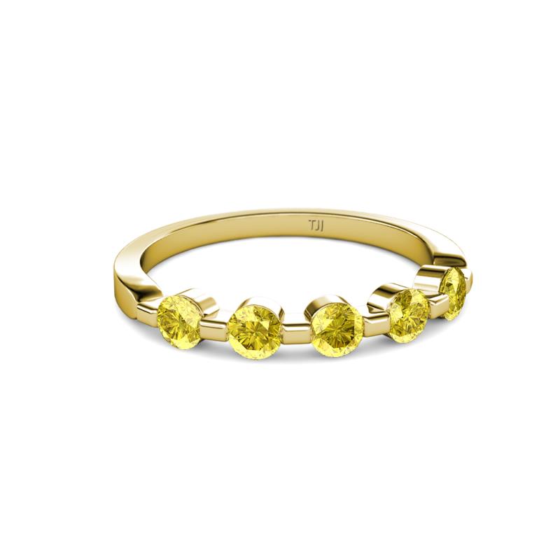 Round Yellow Sapphire 3/4 ctw 5 Stone Bar Set Womens Wedding Band Stackable 10K Yellow Gold More Details ...
