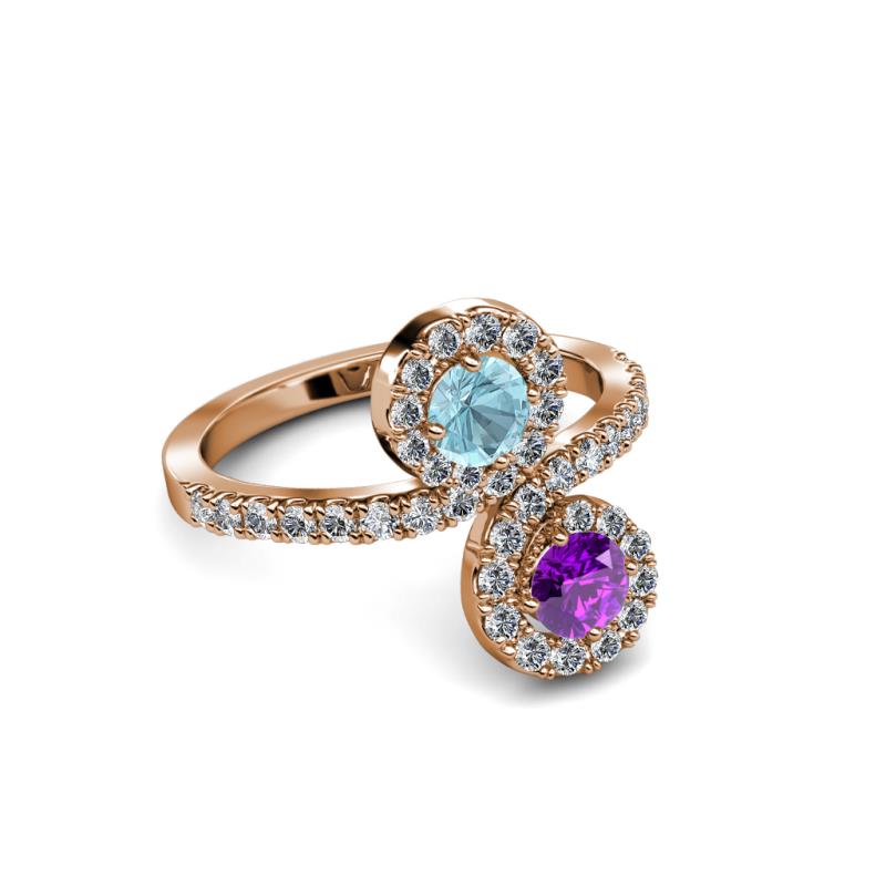 Amethyst and Aquamarine 2 Stone with Side Diamonds Womens Bypass Engagement Ring 1.23 ctw 14K Rose Gold More Details ...