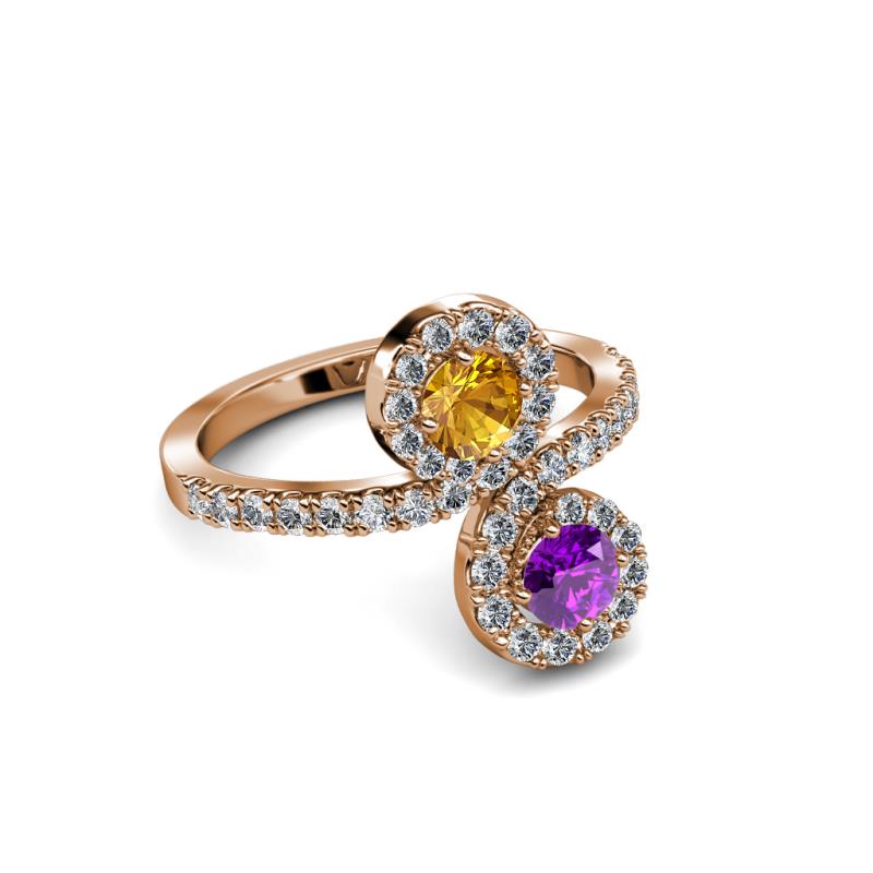 Amethyst and Citrine 2 Stone with Side Diamonds Womens Bypass Engagement Ring 1.23 ctw 14K Rose Gold More Details ...