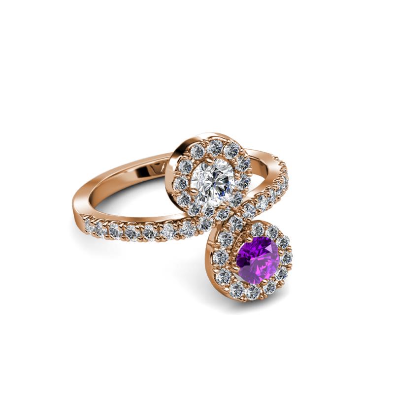 Amethyst and Diamond 2 Stone with Side Diamonds Womens Bypass Engagement Ring 1.22 ctw 14K Rose Gold More Details ...