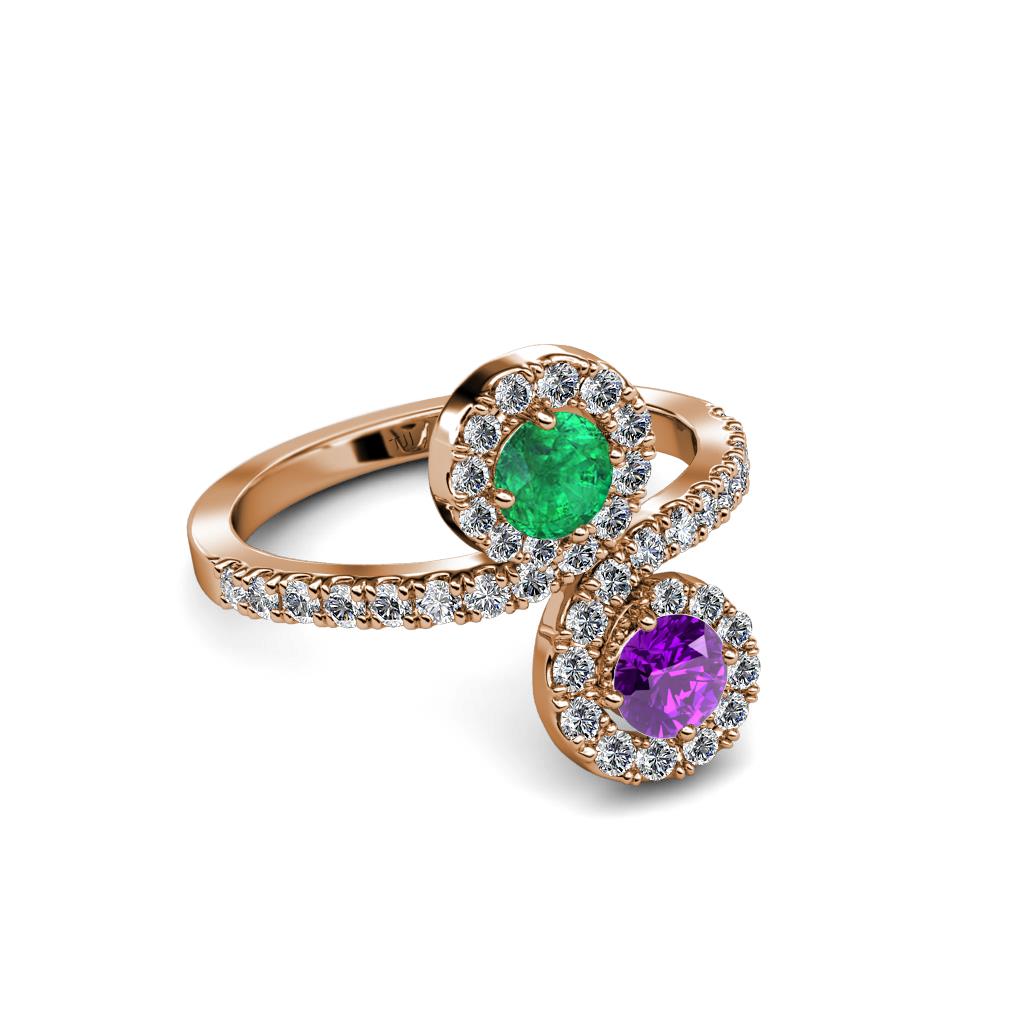 Amethyst and Emerald 2 Stone with Side Diamonds Womens Bypass Engagement Ring 1.23 ctw 14K Rose Gold More Details ...