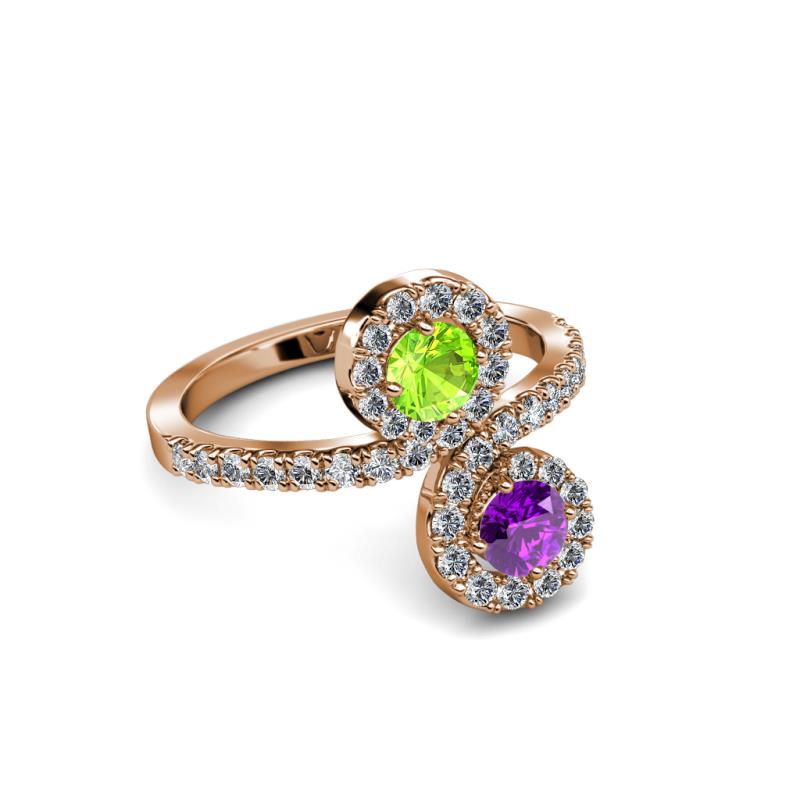 Amethyst and Peridot 2 Stone with Side Diamonds Womens Bypass Engagement Ring 1.26 ctw 14K Rose Gold More Details ...