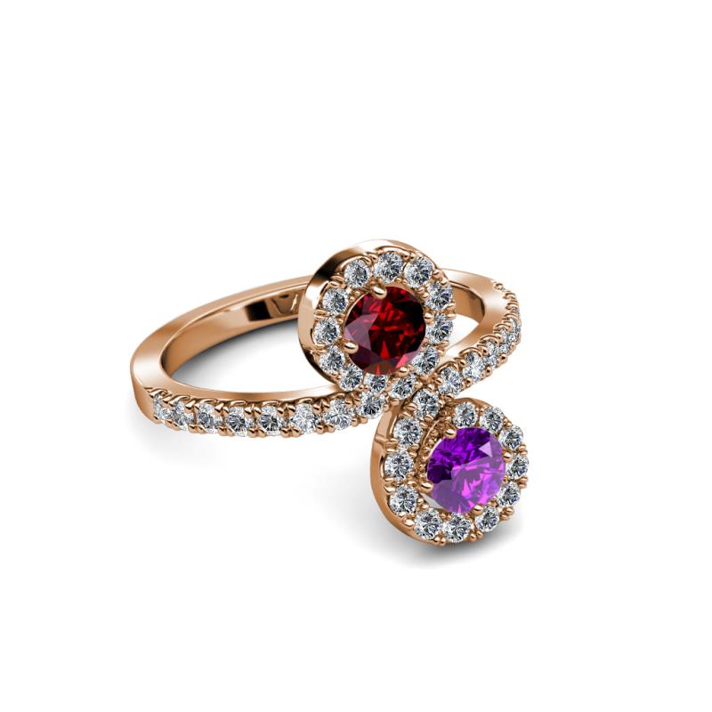 Amethyst and Ruby 2 Stone with Side Diamonds Womens Bypass Engagement Ring 1.23 ctw 14K Rose Gold More Details ...