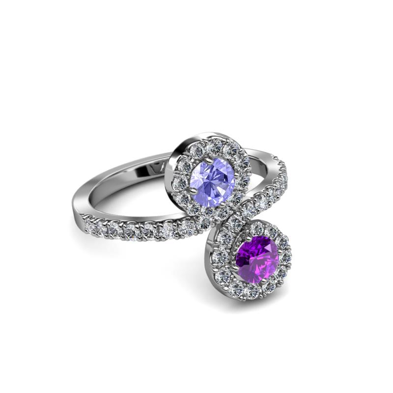 Amethyst and Tanzanite 2 Stone with Side Diamonds Womens Bypass Engagement Ring 1.20 ctw 14K White Gold More Details ...