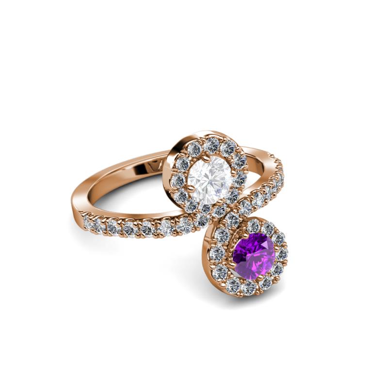 Amethyst and White Sapphire 2 Stone with Side Diamonds Womens Bypass Engagement Ring 1.23 ctw 14K Rose Gold More Details ...