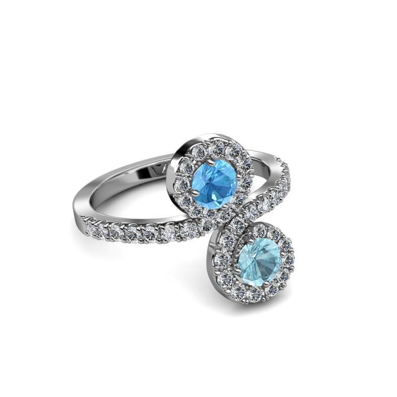 Aquamarine and Blue Topaz 2 Stone with Side Diamonds Womens Bypass Engagement Ring 1.25 ctw 14K White Gold More Details ...