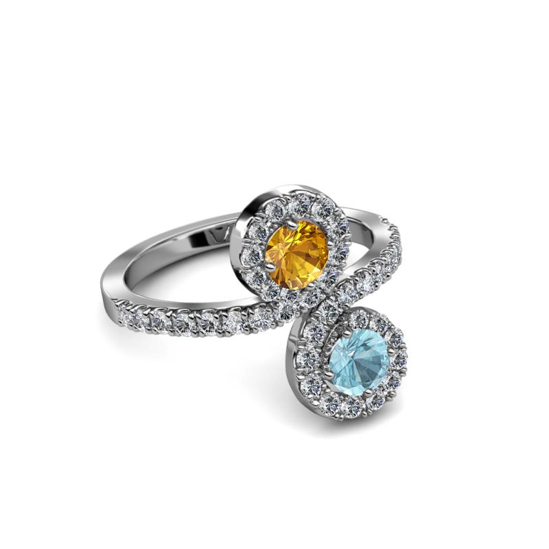 Aquamarine and Citrine 2 Stone with Side Diamonds Womens Bypass Engagement Ring 1.23 ctw 14K White Gold More Details ...