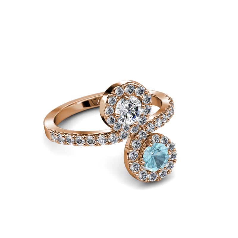 Aquamarine and Diamond 2 Stone with Side Diamonds Womens Bypass Engagement Ring 1.22 ctw 14K Rose Gold More Details ...