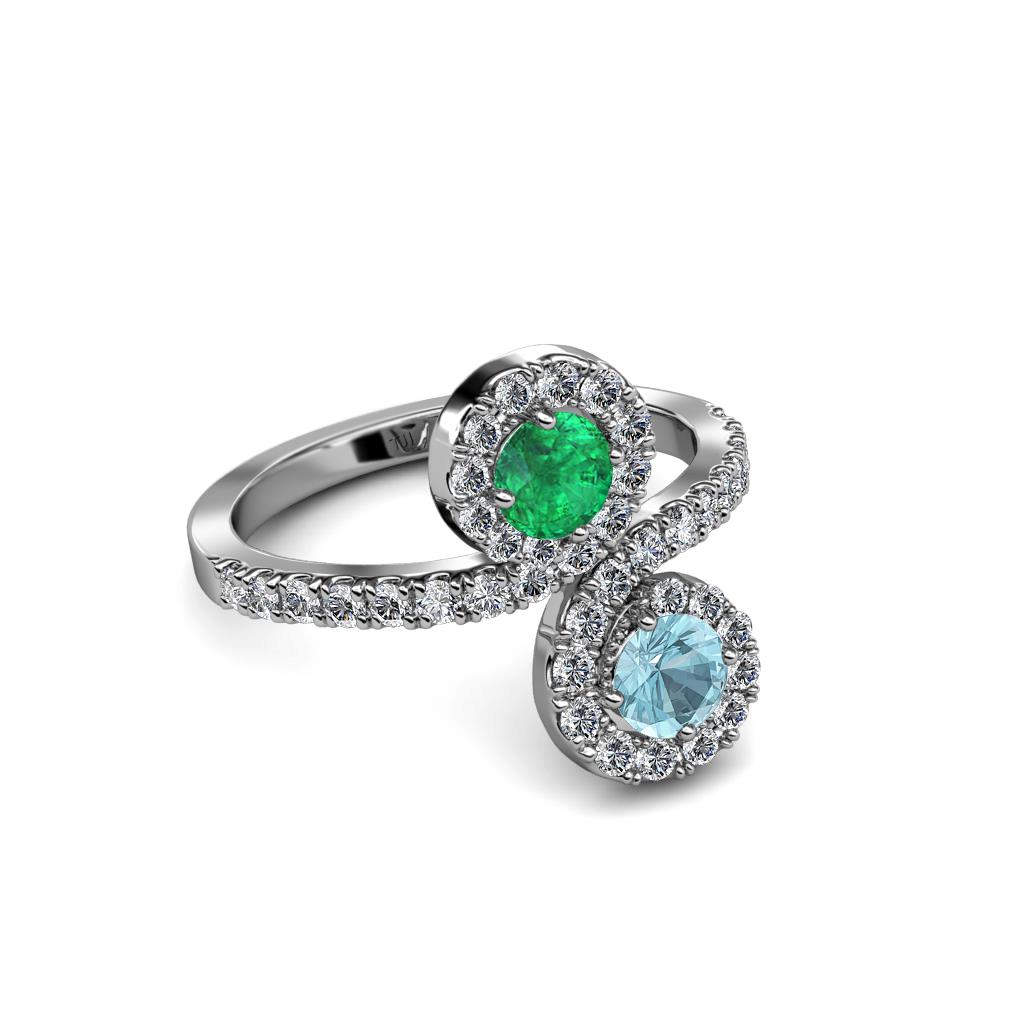 Aquamarine and Emerald 2 Stone with Side Diamonds Womens Bypass Engagement Ring 1.23 ctw 14K White Gold More Details ...