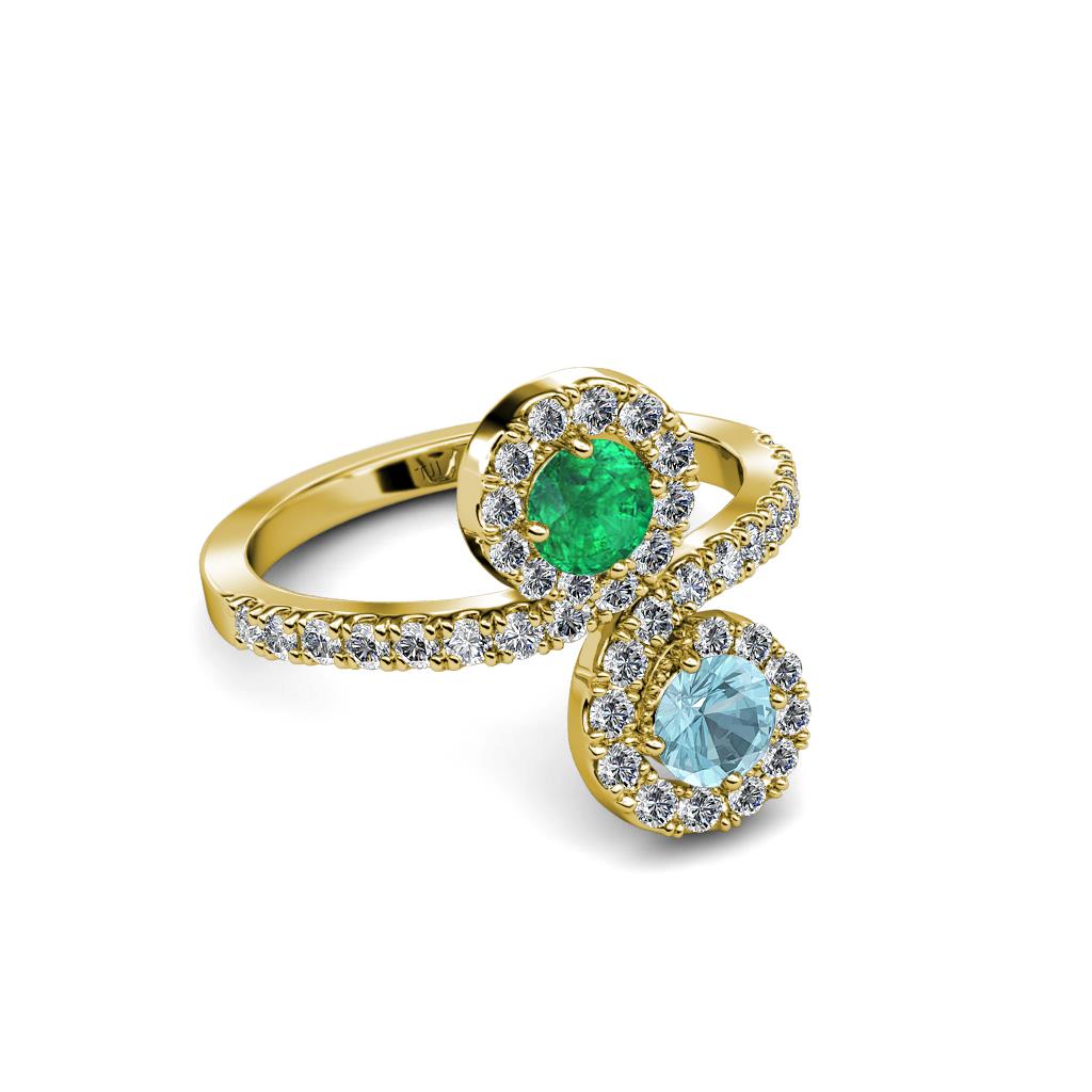 Aquamarine and Emerald 2 Stone with Side Diamonds Womens Bypass Engagement Ring 1.23 ctw 14K Yellow Gold More Details ...