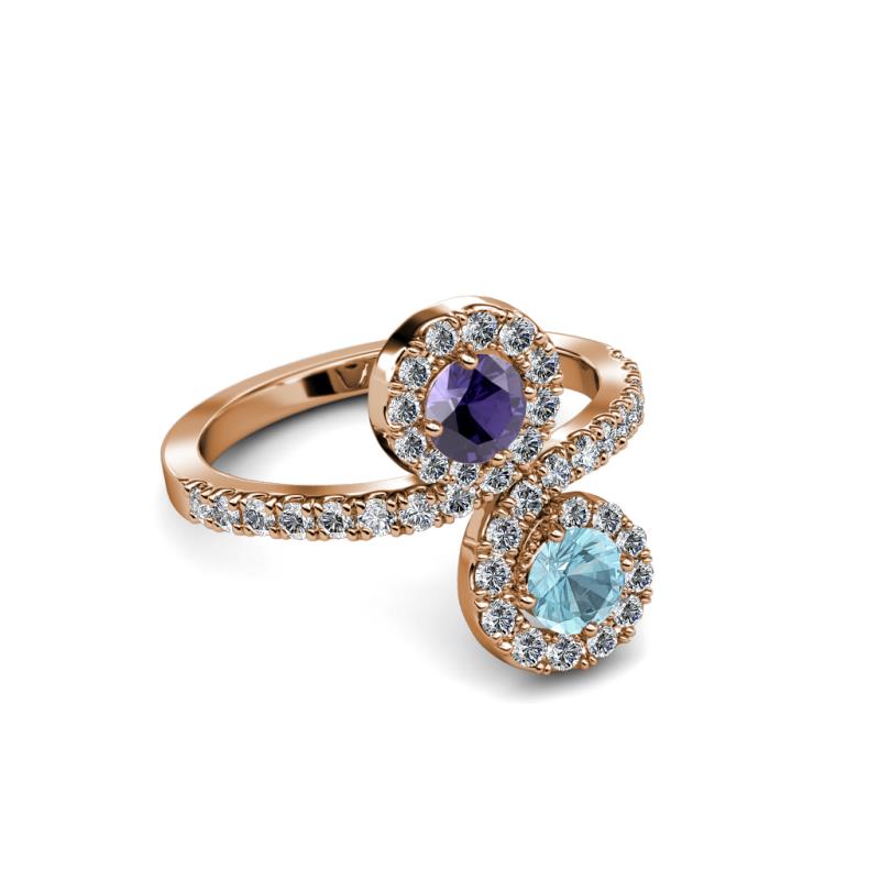 Aquamarine and Iolite 2 Stone with Side Diamonds Womens Bypass Engagement Ring 1.23 ctw 14K Rose Gold More Details ...