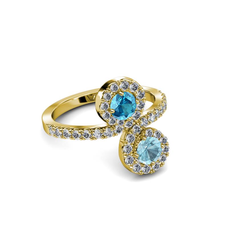 Aquamarine and London Blue Topaz 2 Stone with Side Diamonds Womens Bypass Engagement Ring 1.25 ctw 14K Yellow Gold More Details ...