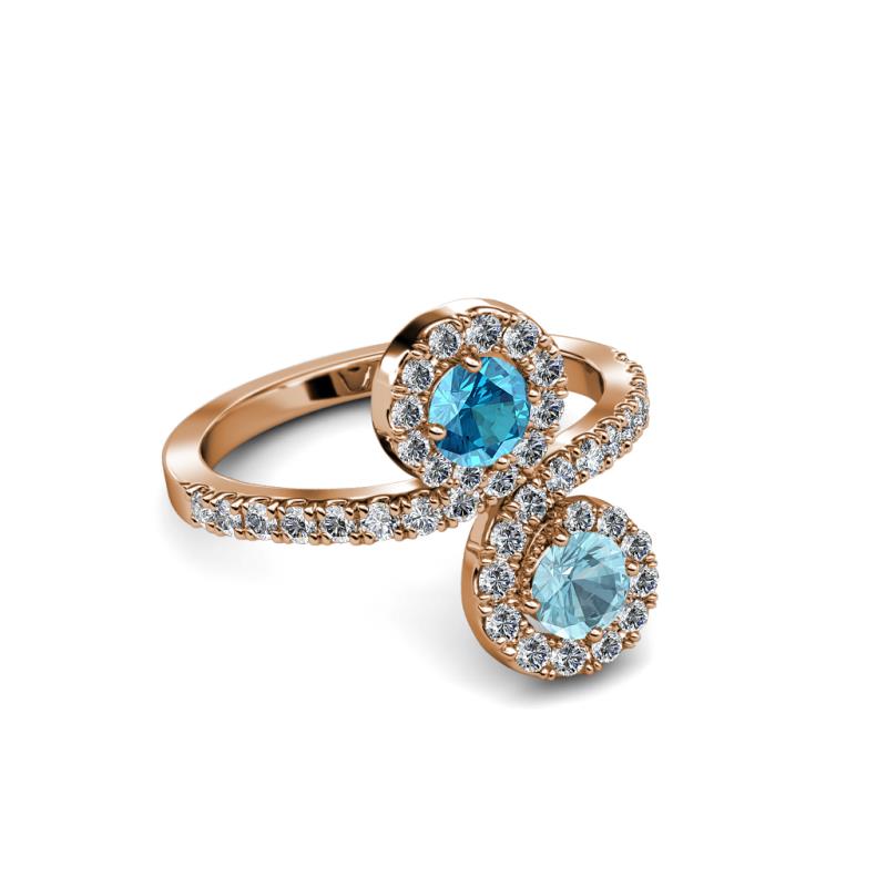 Aquamarine and London Blue Topaz 2 Stone with Side Diamonds Womens Bypass Engagement Ring 1.25 ctw 14K Rose Gold More Details ...