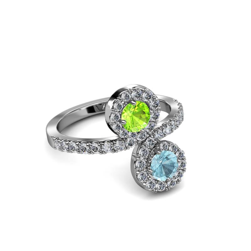 Aquamarine and Peridot 2 Stone with Side Diamonds Womens Bypass Engagement Ring 1.26 ctw 14K White Gold More Details ...