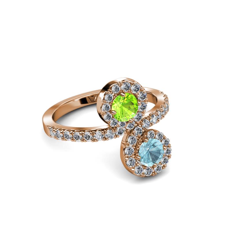 Aquamarine and Peridot 2 Stone with Side Diamonds Womens Bypass Engagement Ring 1.26 ctw 14K Rose Gold More Details ...