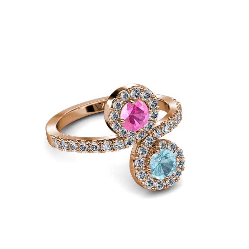 Aquamarine and Pink Sapphire 2 Stone with Side Diamonds Womens Bypass Engagement Ring 1.23 ctw 14K Rose Gold More Details ...