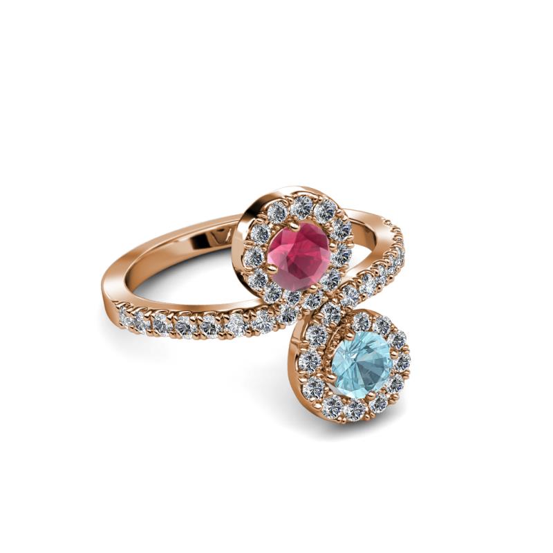 Aquamarine and Rhodolite Garnet 2 Stone with Side Diamonds Womens Bypass Engagement Ring 1.26 ctw 14K Rose Gold More Details ...