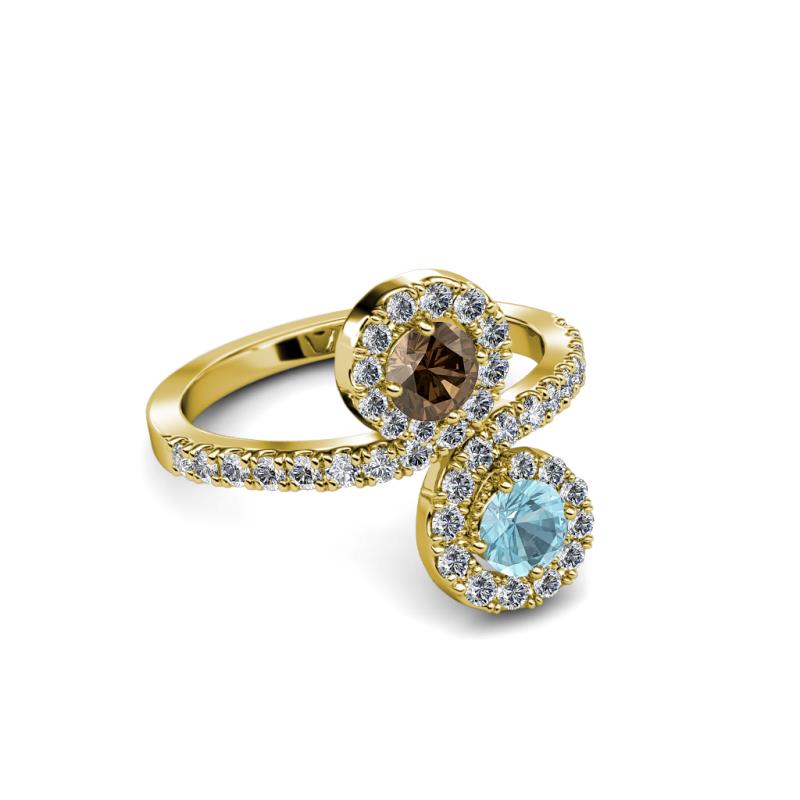 Aquamarine and Smoky Quartz 2 Stone with Side Diamonds Womens Bypass Engagement Ring 1.20 ctw 14K Yellow Gold More Details ...