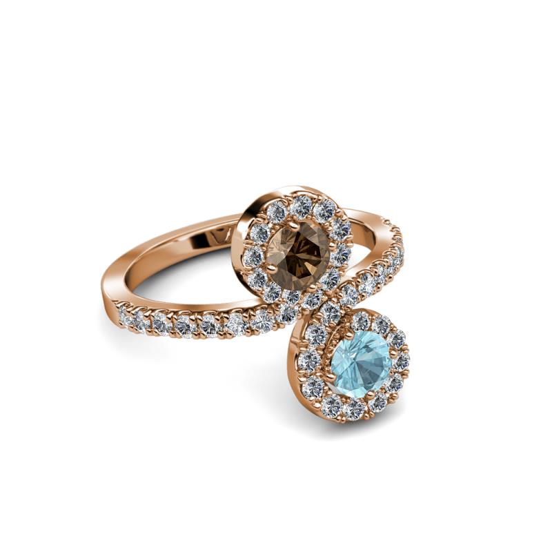 Aquamarine and Smoky Quartz 2 Stone with Side Diamonds Womens Bypass Engagement Ring 1.20 ctw 14K Rose Gold More Details ...