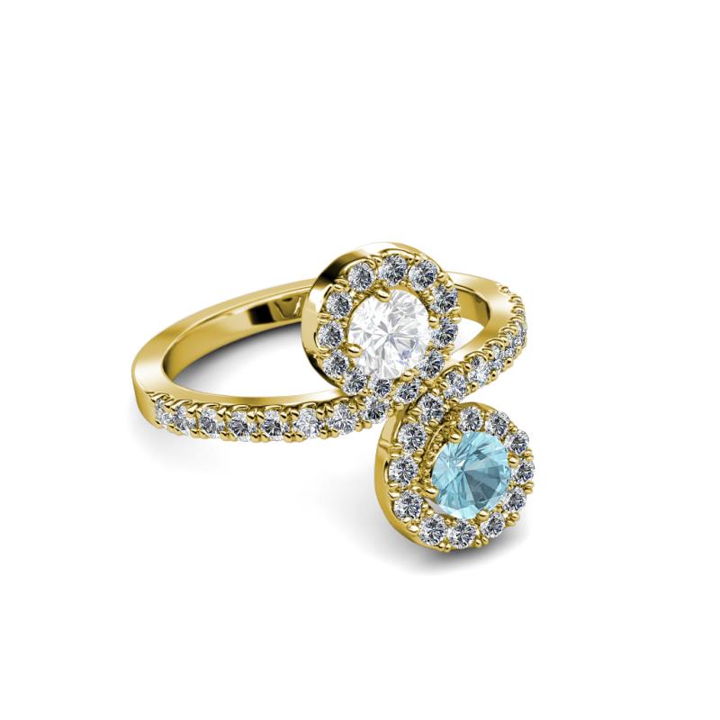 Aquamarine and White Sapphire 2 Stone with Side Diamonds Womens Bypass Engagement Ring 1.23 ctw 14K Yellow Gold More Details ...