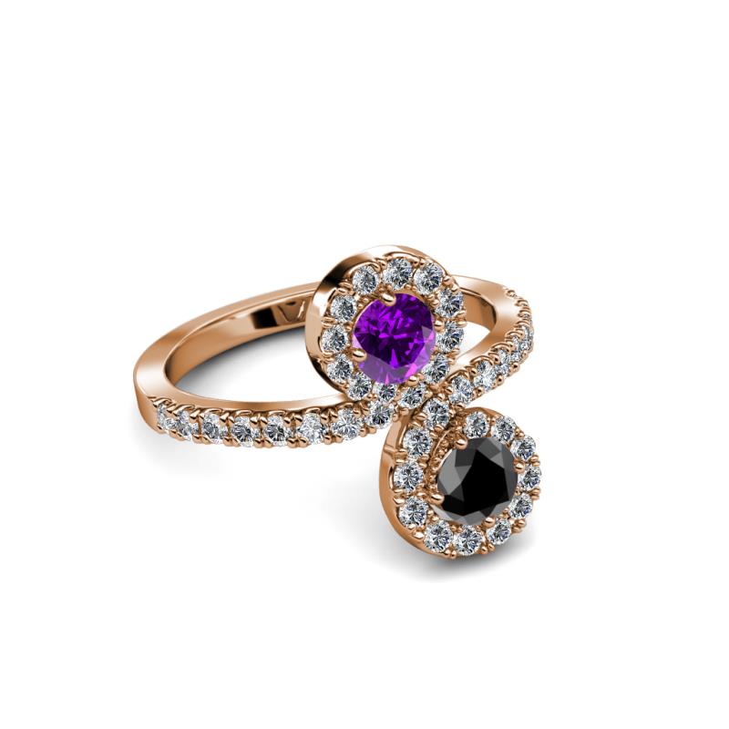 Black Diamond and Amethyst 2 Stone with Side Diamonds Womens Bypass Engagement Ring 1.27 ctw 14K Rose Gold More Details ...
