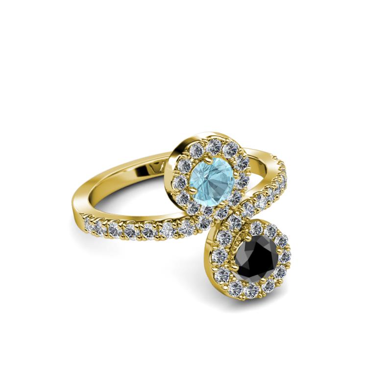 Black Diamond and Aquamarine 2 Stone with Side Diamonds Womens Bypass Engagement Ring 1.27 ctw 14K Yellow Gold More Details ...