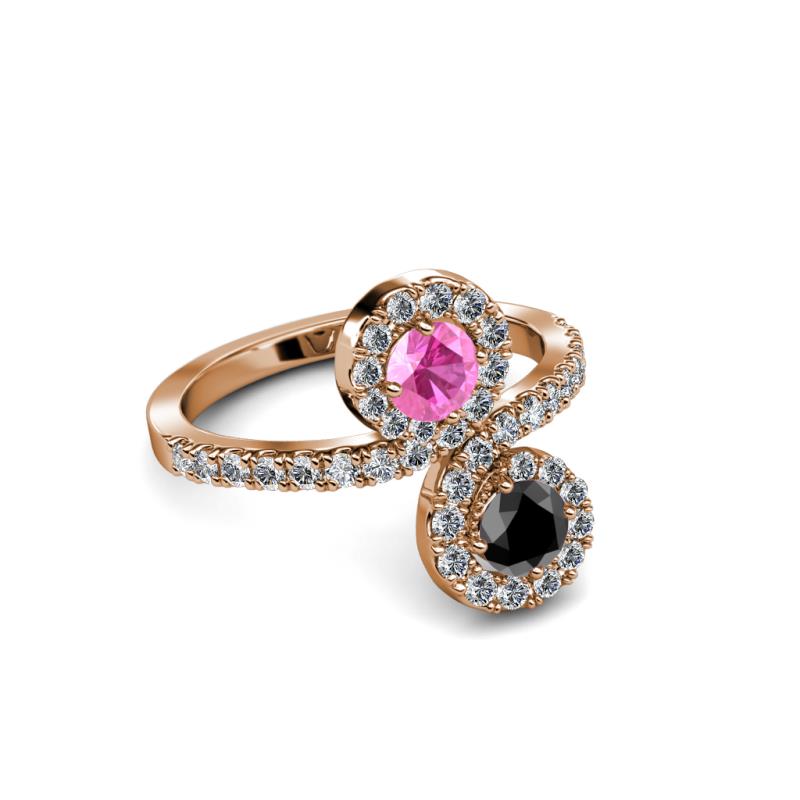 Black Diamond and Pink Sapphire 2 Stone with Side Diamonds Womens Bypass Engagement Ring 1.27 ctw 14K Rose Gold More Details ...