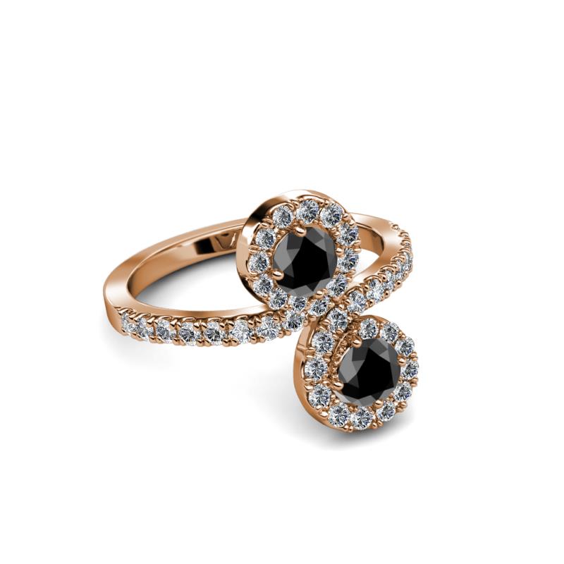 Black Diamond 2 Stone with Side White Diamonds Womens Bypass Engagement Ring 1.30 ctw 14K Rose Gold More Details ...