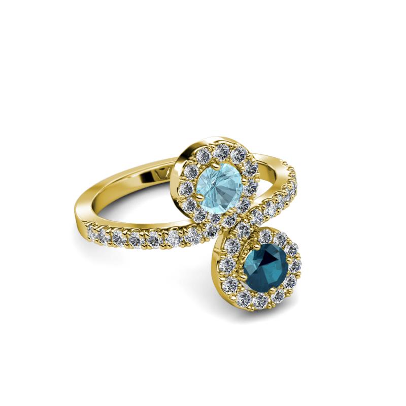 Blue Diamond and Aquamarine 2 Stone with Side Diamonds Womens Bypass Engagement Ring 1.22 ctw 14K Yellow Gold More Details ...