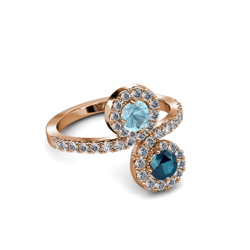 Blue Diamond and Aquamarine 2 Stone with Side Diamonds Womens Bypass Engagement Ring 1.22 ctw 14K Rose Gold More Details ...