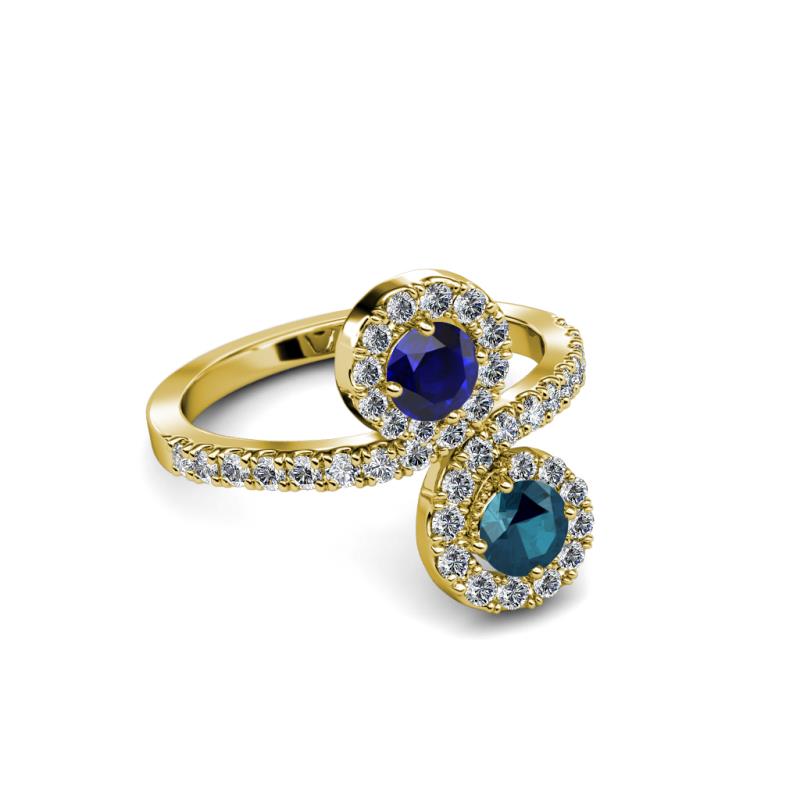 Blue Diamond and Blue Sapphire 2 Stone with Side Diamonds Womens Bypass Engagement Ring 1.22 ctw 14K Yellow Gold More Details ...