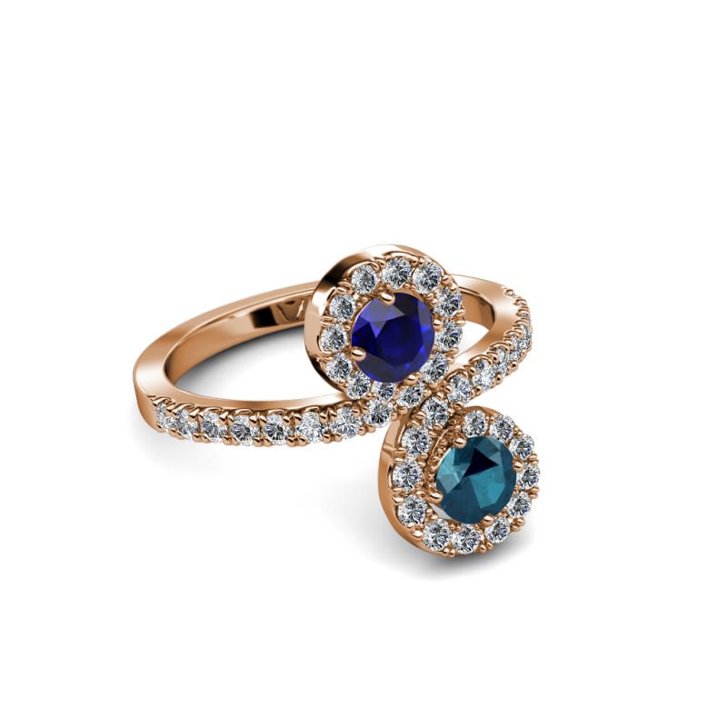 Blue Diamond and Blue Sapphire 2 Stone with Side Diamonds Womens Bypass Engagement Ring 1.22 ctw 14K Rose Gold More Details ...