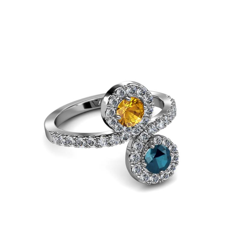 Blue Diamond and Citrine 2 Stone with Side Diamonds Womens Bypass Engagement Ring 1.22 ctw 14K White Gold More Details ...
