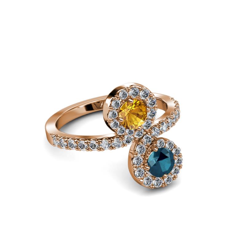 Blue Diamond and Citrine 2 Stone with Side Diamonds Womens Bypass Engagement Ring 1.22 ctw 14K Rose Gold More Details ...