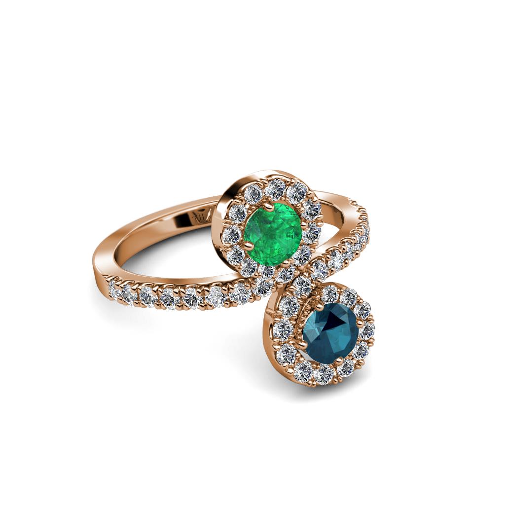 Blue Diamond and Emerald 2 Stone with Side Diamonds Womens Bypass Engagement Ring 1.22 ctw 14K Rose Gold More Details ...