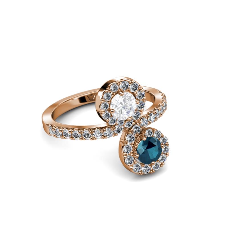 Blue Diamond and White Sapphire 2 Stone with Side Diamonds Womens Bypass Engagement Ring 1.22 ctw 14K Rose Gold More Details ...