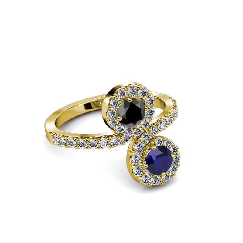 Blue Sapphire and Black Diamond 2 Stone with Side Diamonds Womens Bypass Engagement Ring 1.27 ctw 14K Yellow Gold More Details ...