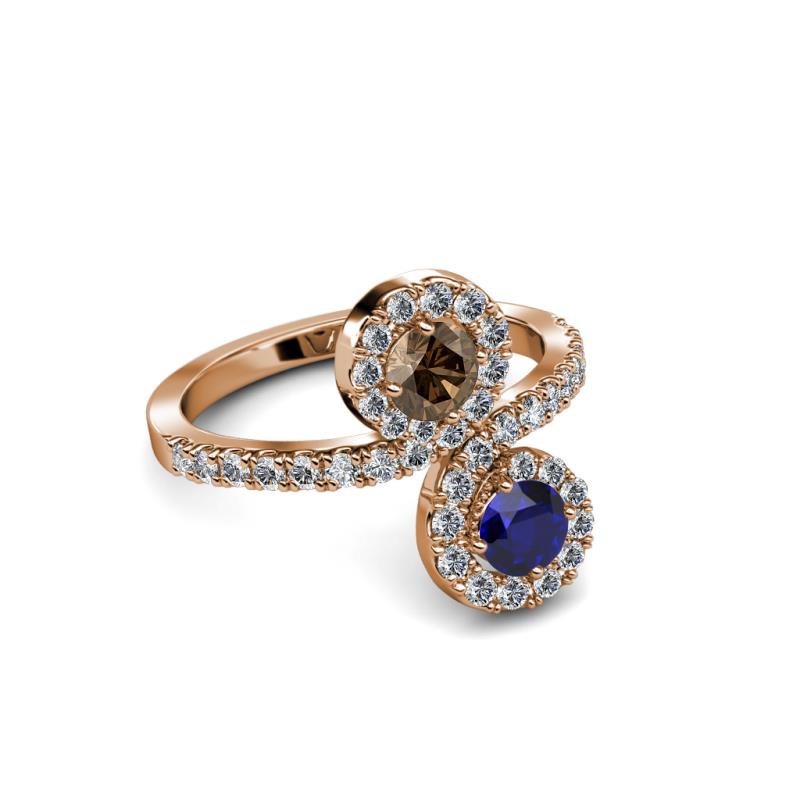 Blue Sapphire and Smoky Quartz 2 Stone with Side Diamonds Womens Bypass Engagement Ring 1.20 ctw 14K Rose Gold More Details ...
