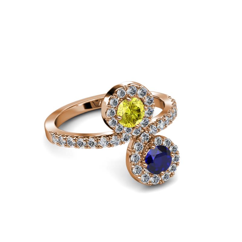 Blue Sapphire and Yellow Diamond 2 Stone with Side Diamonds Womens Bypass Engagement Ring 1.22 ctw 14K Rose Gold More Details ...